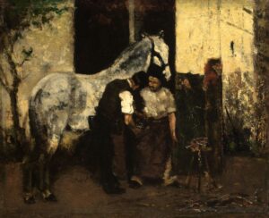Max Liebermann, Beim Hufschmied, 1874,Öl auf Holz, Staatliche Kunsthalle Karlsruhe