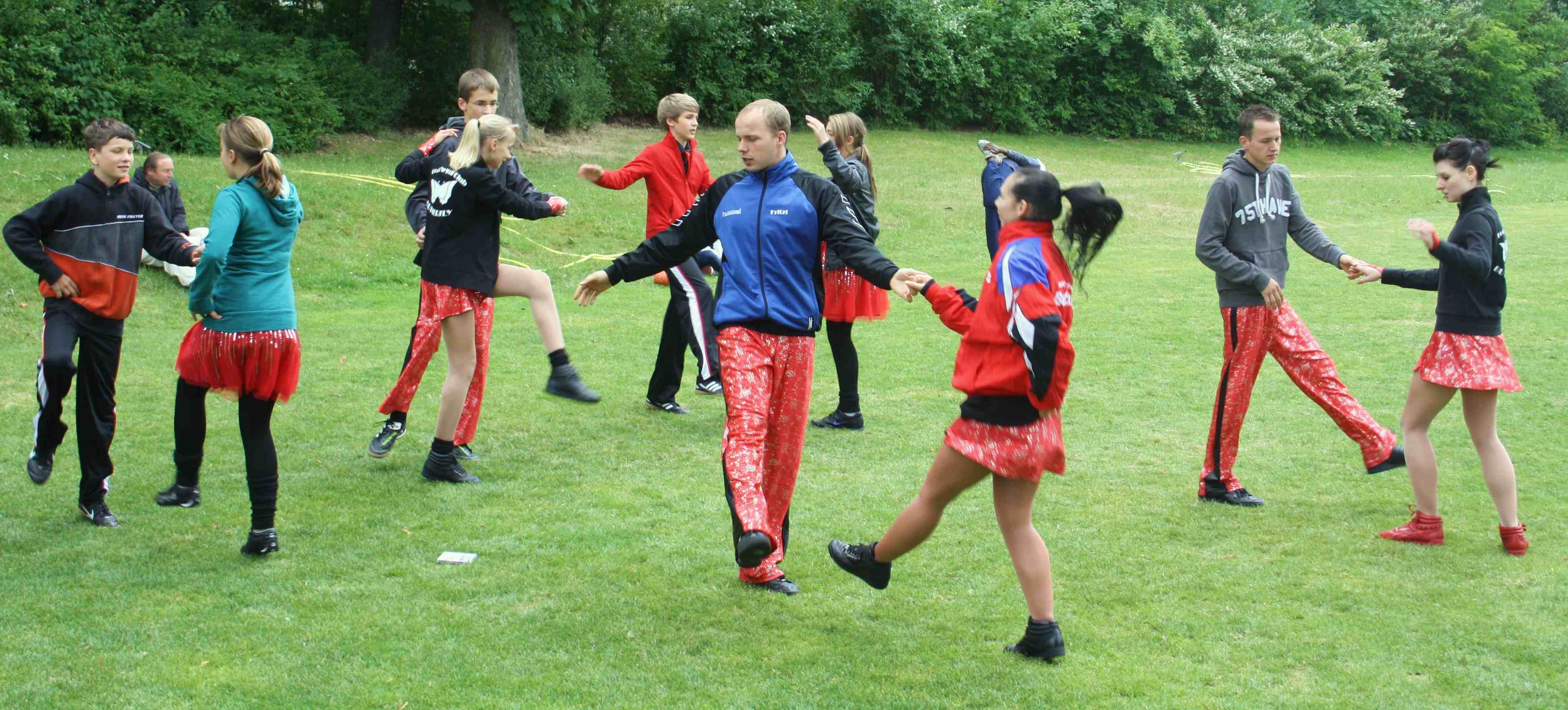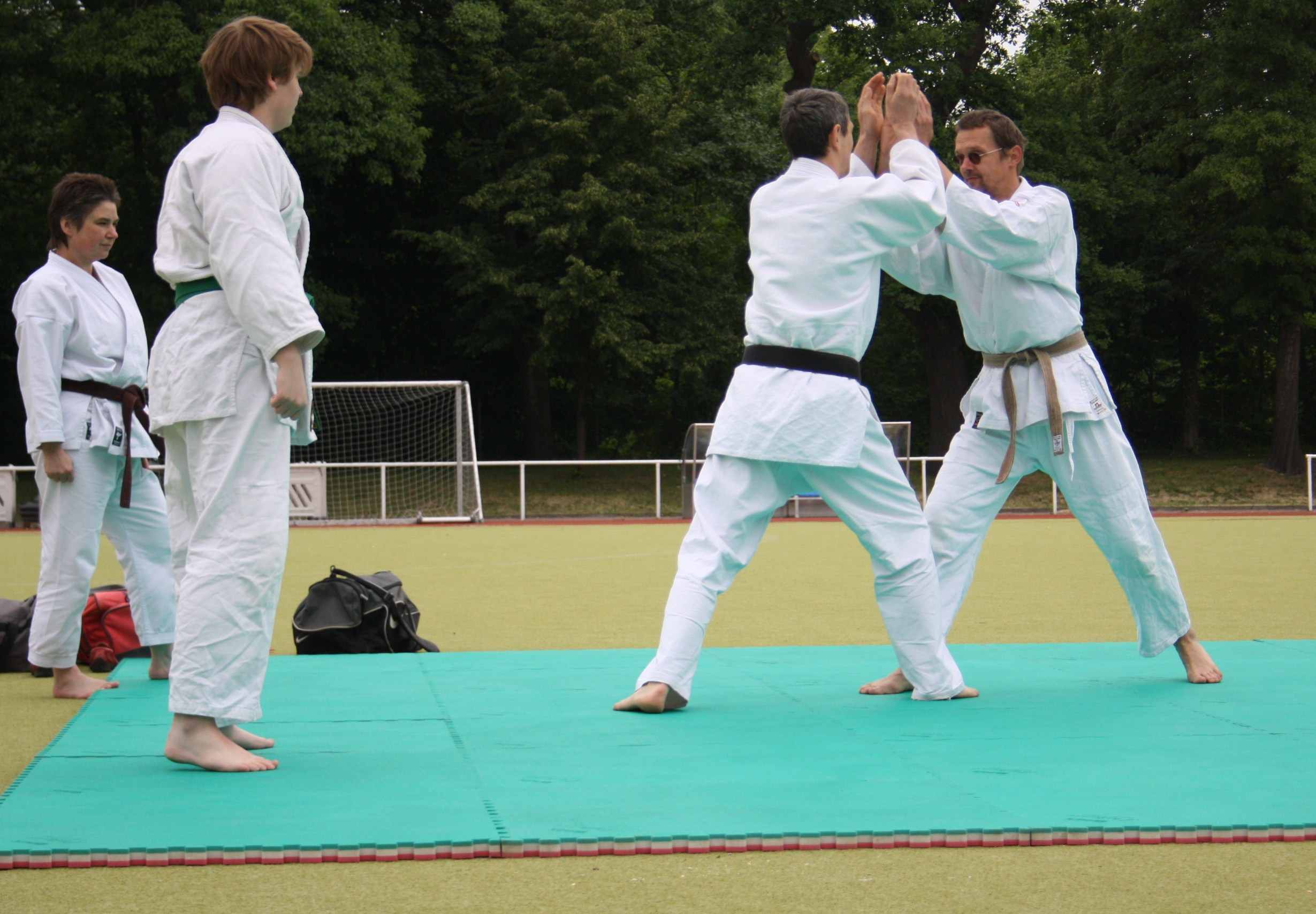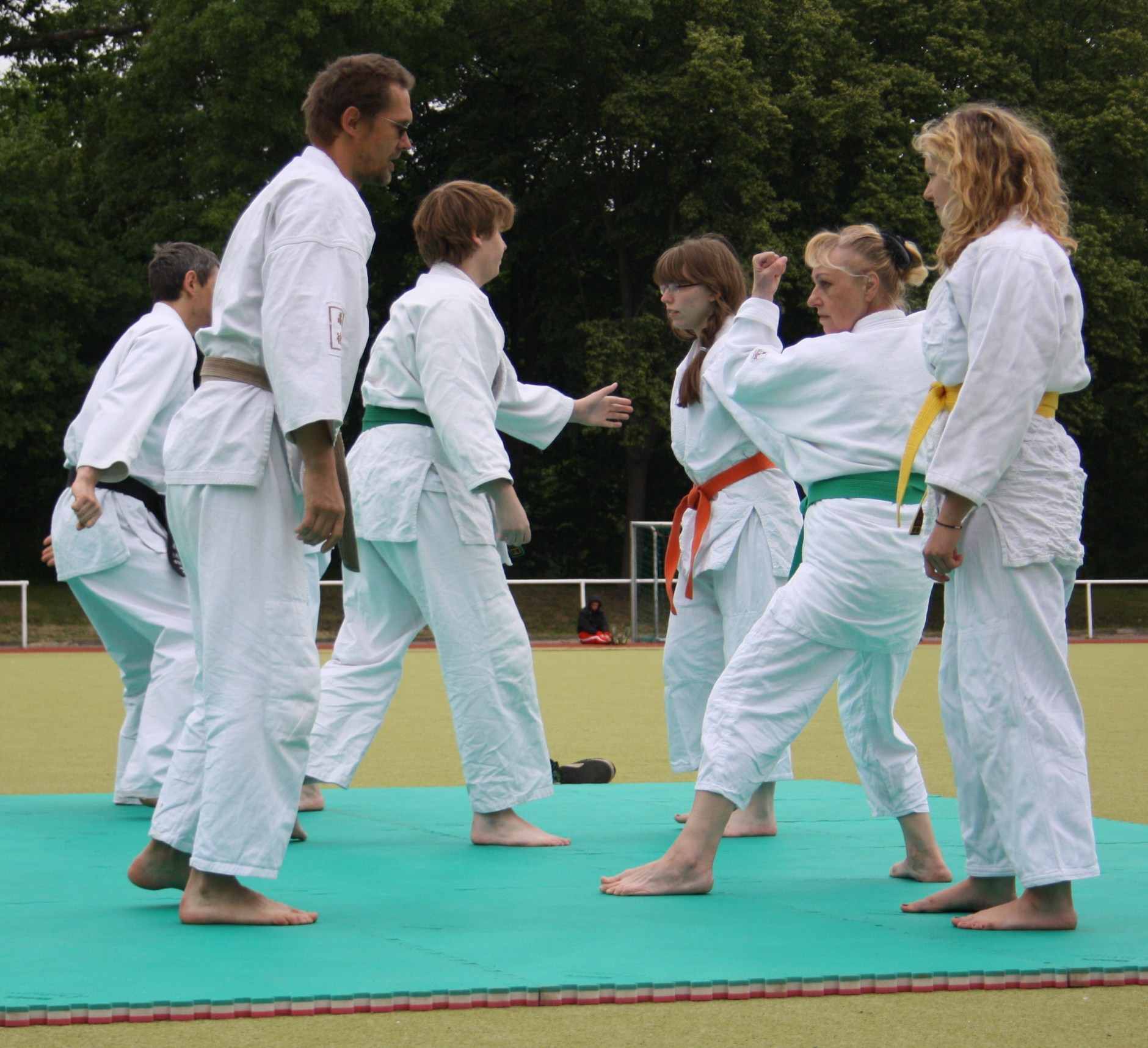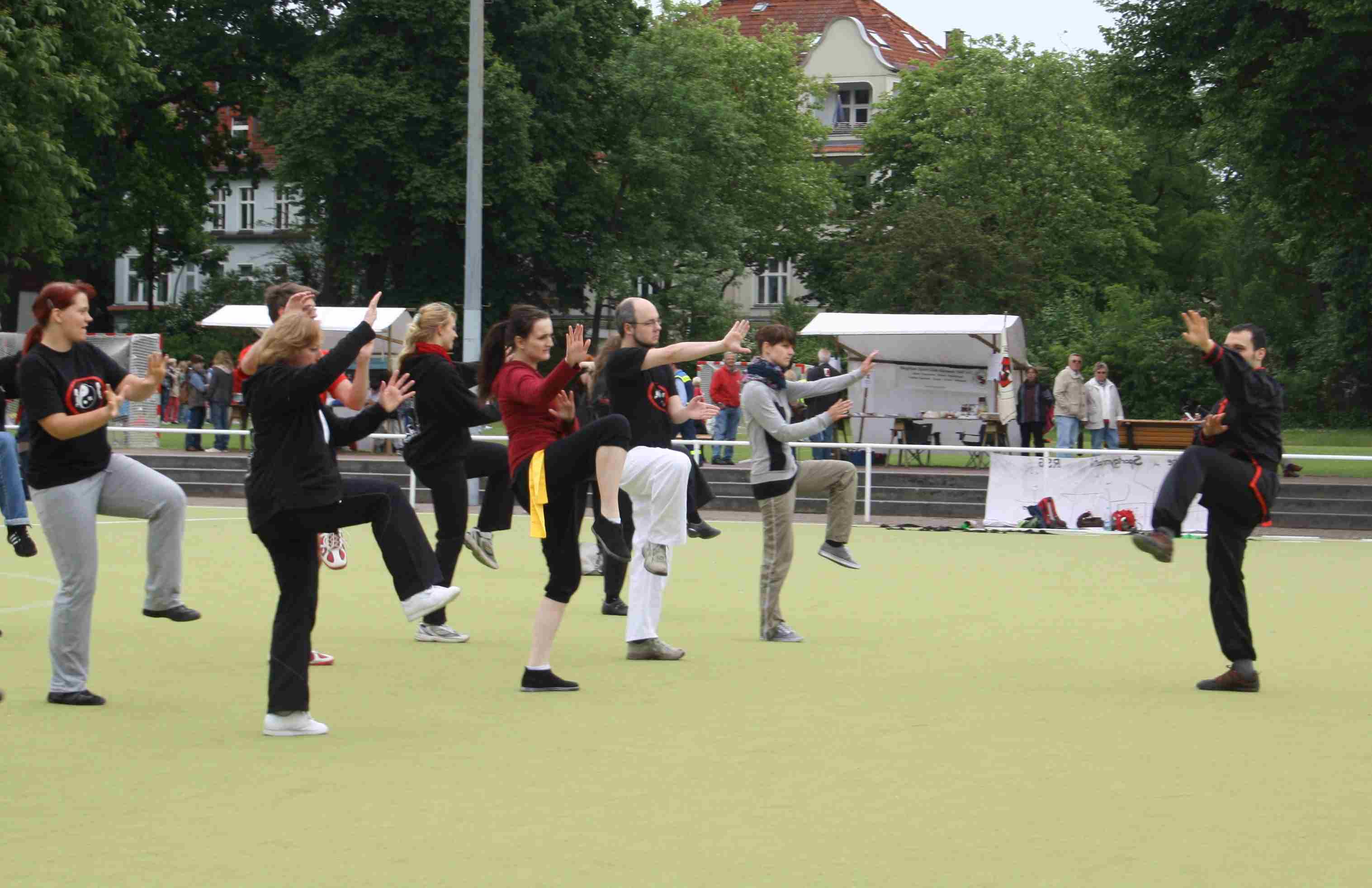 Auch andere Vereine zeigten auf dem Gelände des Lichterfelder Stadions was sie drauf haben. Die Tänzer vom Rock’n’Roll-Club Butterfly etwa flogen durch die Lüfte und die die Jui-Jitsu-Kämpfer vom VfL verwickelten sich in Kampfhandlungen.
