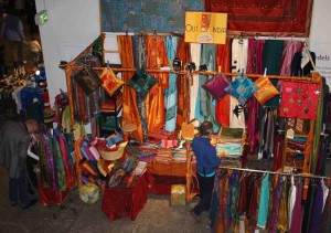 Mehr als hundert Händler, Künstler und Mitglieder von sozialen Projekten bieten Kunsthandwerk aus aller Welt an – von von handgewebten Stoffen über Filzwaren aus Kasachstan bis zu farbenfrohen südamerikanischen Wandbehängen, von australischen Hängematten über indischen Schmuck bis zu madegassischem Spielzeug und feinsten asiatischen Lackschächtelchen.